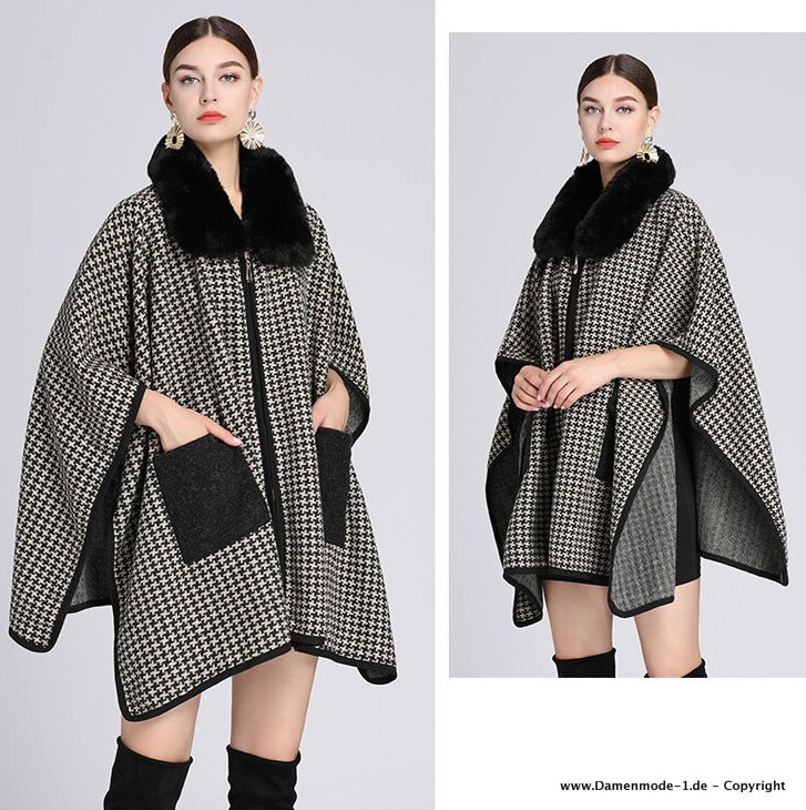 Damen Winter Poncho Cape Klassisch Kariert