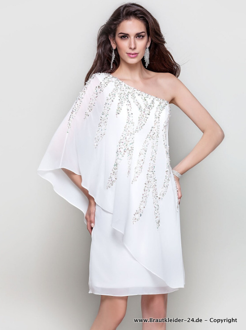 One Shoulder Chiffon Kleid für die Braut Knielang mit Pailletten