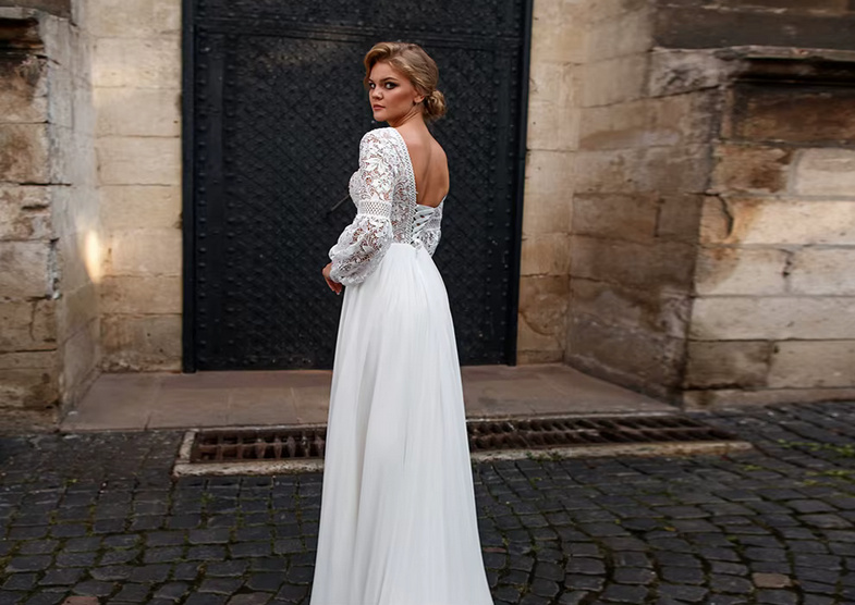 Long Sleeve Boho Wedding Dress 2025 with Lace and Back Neckline