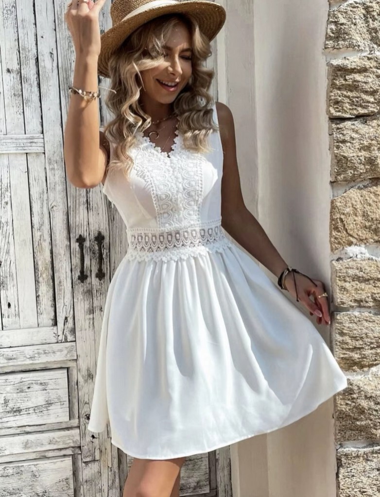 Sleeveless Boho Summer Civil Ceremony Dress Short in White