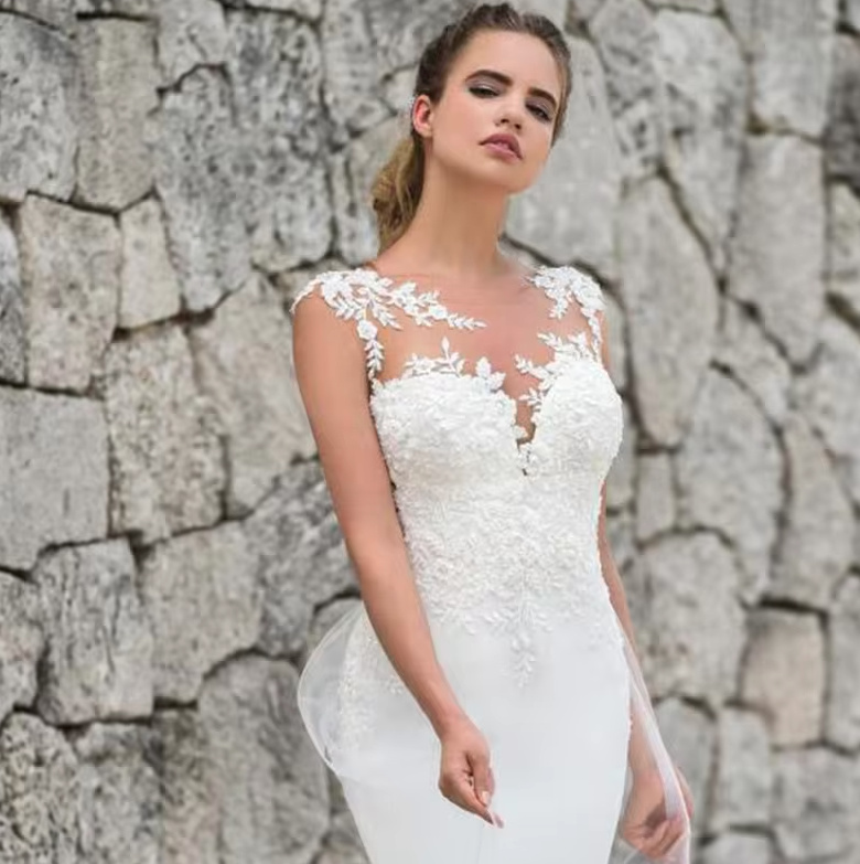 Fit and Flare Wedding Dress Annkathrin with Train and Illusion Neckline