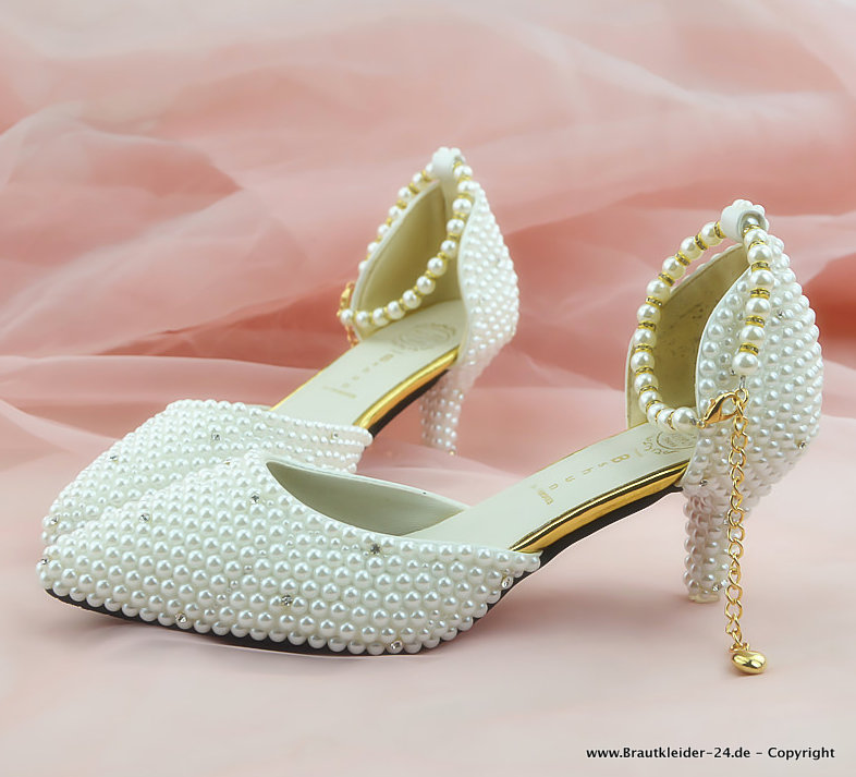 Perlen Brautschuhe Abendschuhe Finnja Elegant in Weiß 6cm Absatz