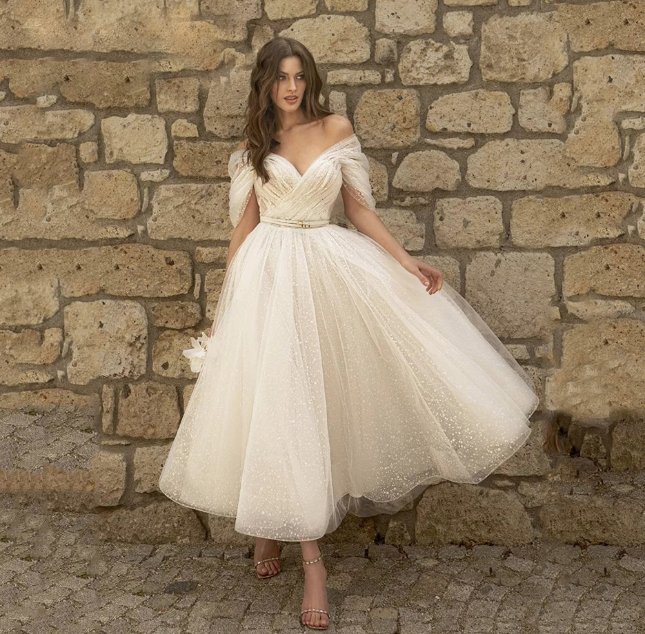 Off-the-shoulder A-line glitter tulle wedding dress Deborah