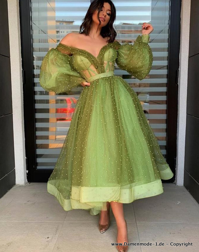 A Linie Mieder Fashion Kleid Elegant Schulterfrei in Grün