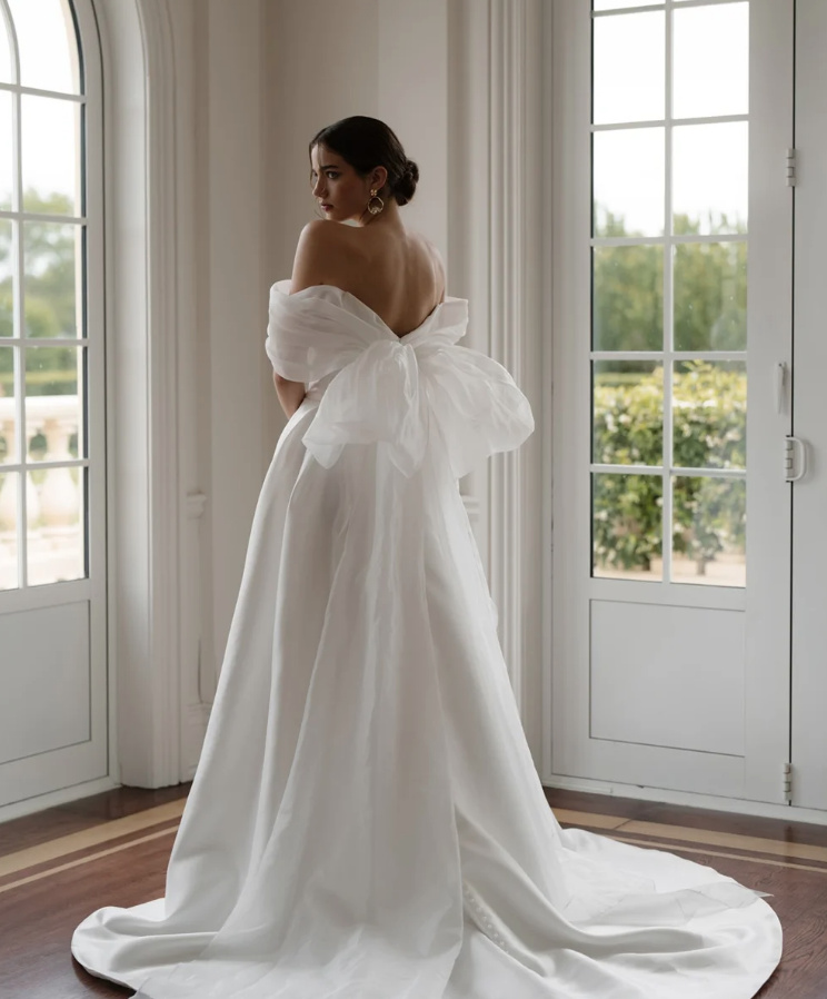 Off-the-shoulder A-line wedding dress Alva Modern with train