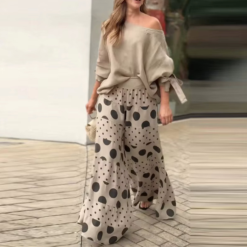 Women’s Summer Set 2025 Two-piece Dala Beige Blouse with Pants in Set
