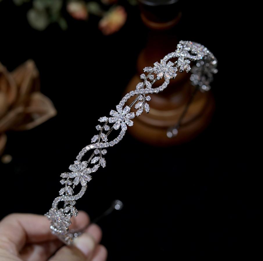 Crystal Zircon Bridal Tiara Headband in Silver