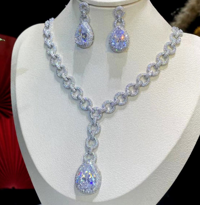 Shiny bridal jewelry set Dinah in silver necklace with earrings