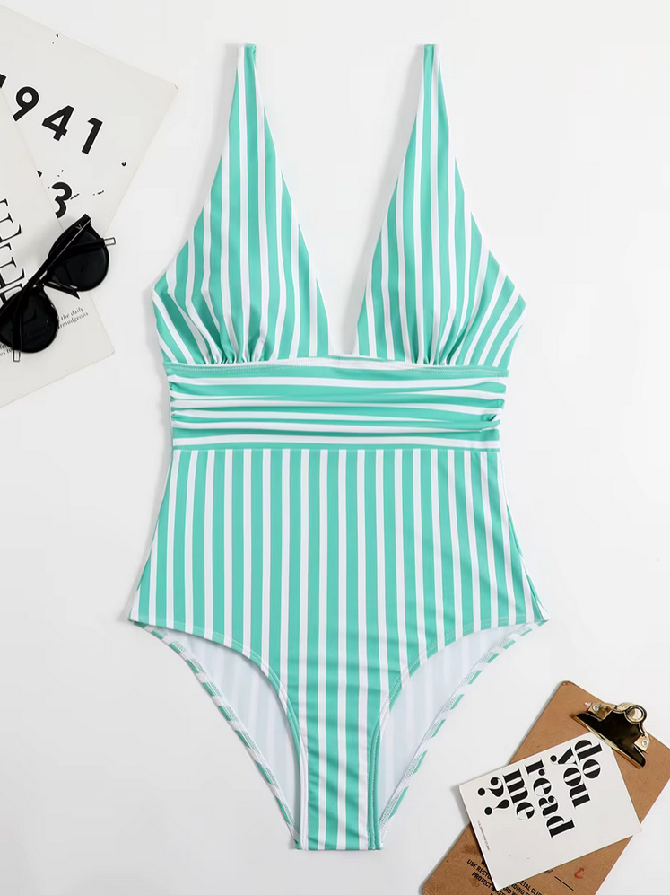 Retro Style Swimsuit 2025 Tiara Green White Striped