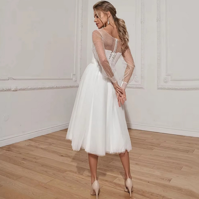 Vintage style wedding dress Gabriele calf-length with tulle sleeves