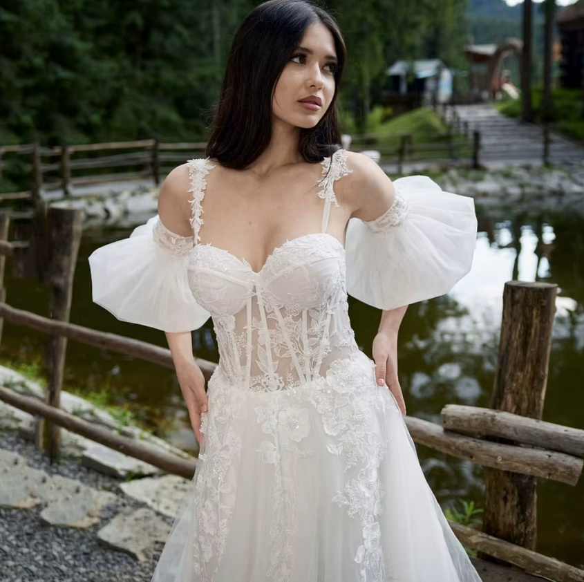 A-line wedding dress Dalia with lingerie top lace and tulle
