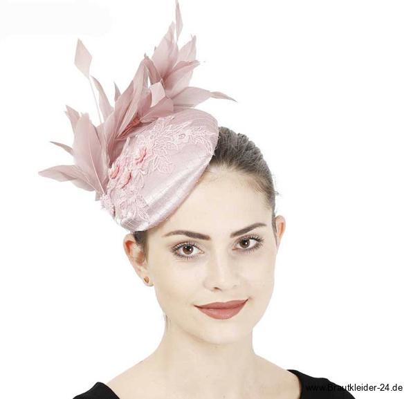 Brauthut Helma Elegant in Rosa mit Spitze und Federn