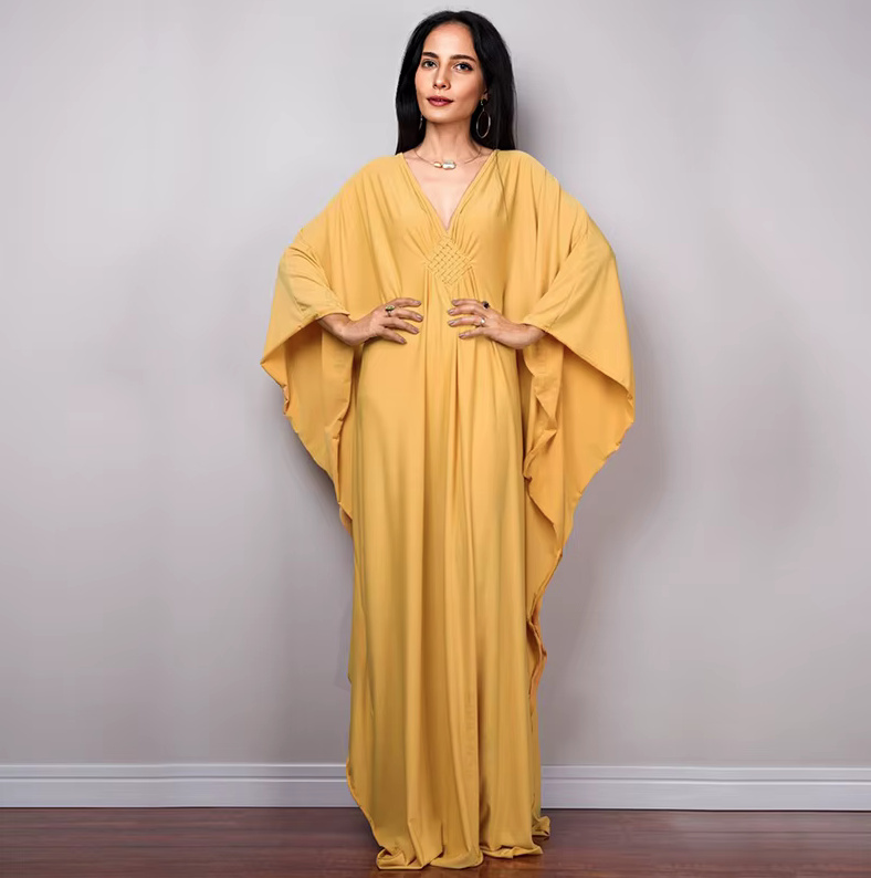 Maxi Sommer Strandkleid 2025 Tasha Gelb mit Fledermaus Ärmeln