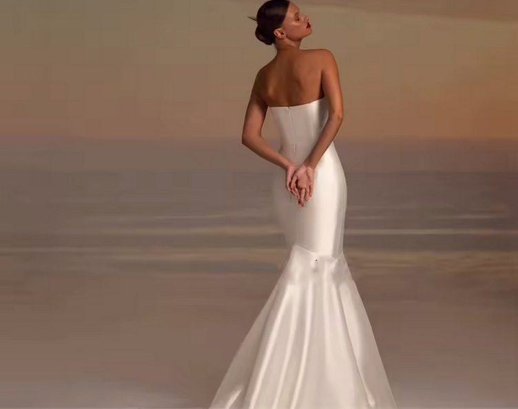 Schulterfreies Satin Meerjungfrau Brautkleid Geeske Clean Chic mit Schleppe