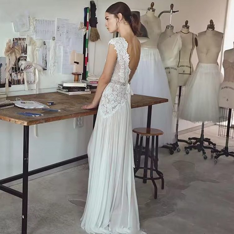 A line boho style wedding dress Gill with lace backless