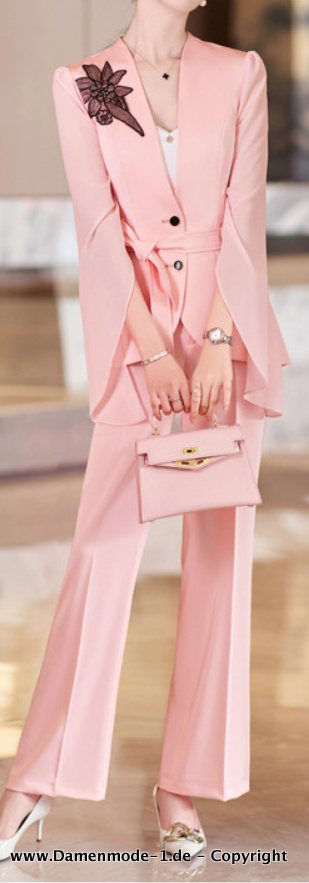 Eleganter Hosenanzug in Zartrosa mit Blume