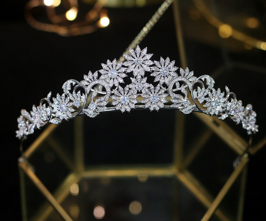 Kristall Braut Tiara Diadem Darleen in Silber Klassisch Elegant