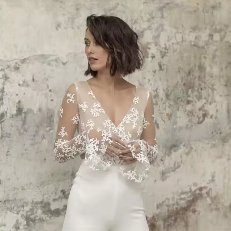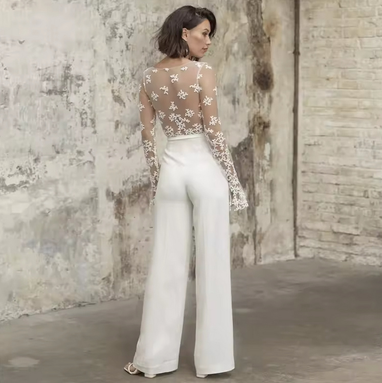 Bridal one-piece jumpsuit Dido with lace sleeves