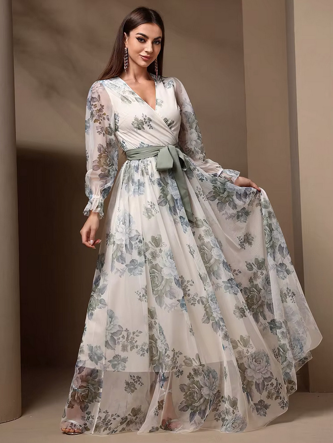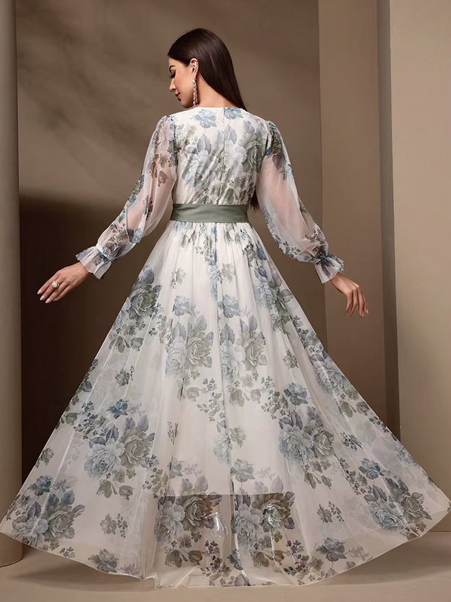 Elegant chiffon maxi dress 2025 Danika white with floral pattern