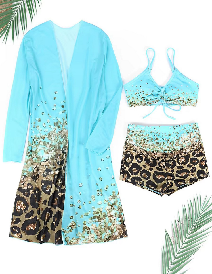 Leo Print Triangle Bikini Set 2025 Three-Piece with Blouse Light Blue