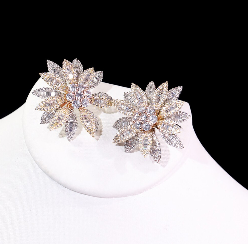 New Bridal Fashion Flower Crystal Bridal Earrings Gold