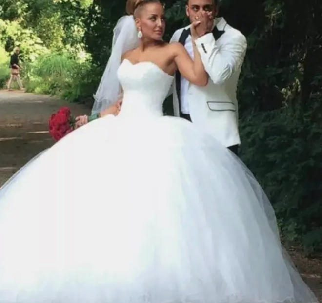 Off-the-shoulder princess ball line wedding dress Annalena with tulle and glitter sequins