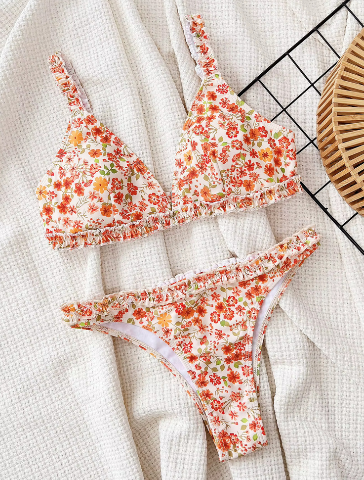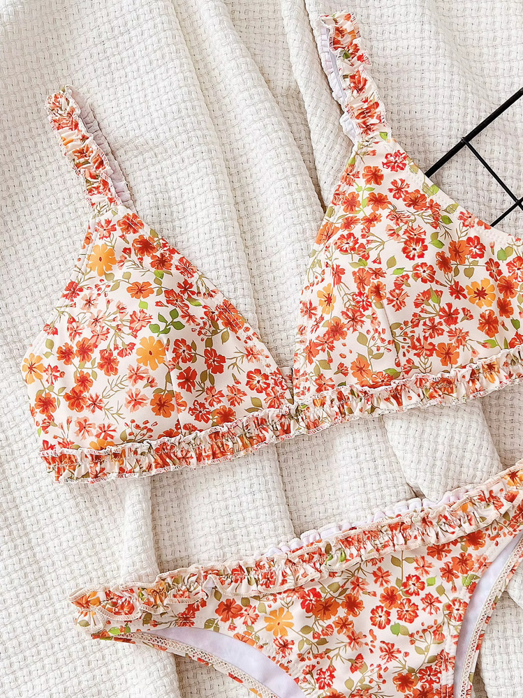 Blumenmuster Triangle Bikini 2025 Theresita Orange