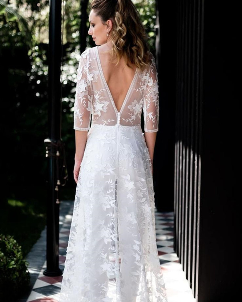 Wedding overall jumpsuit one-piece for the bride with lace and sleeves