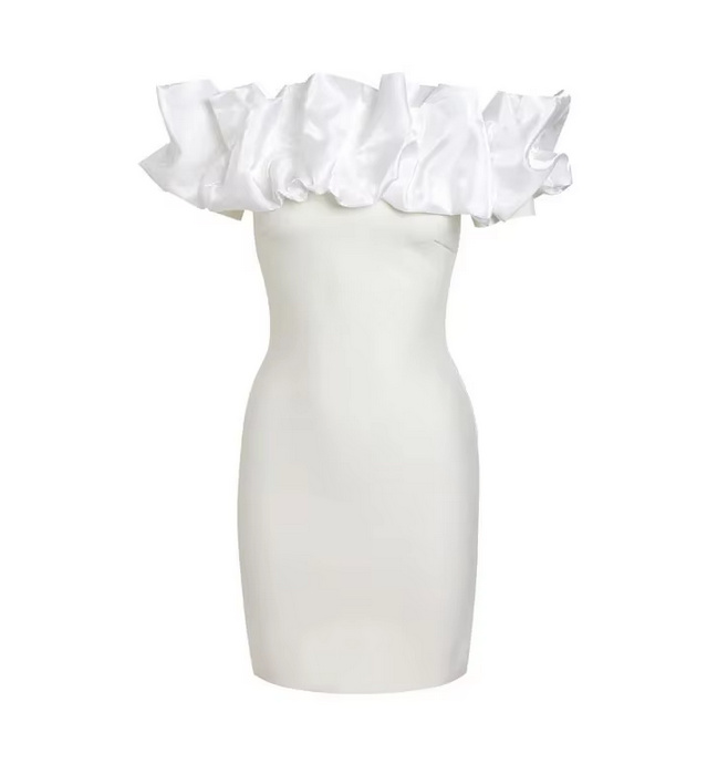 Off-the-shoulder mini registry office wedding dress Gillian with ruffles