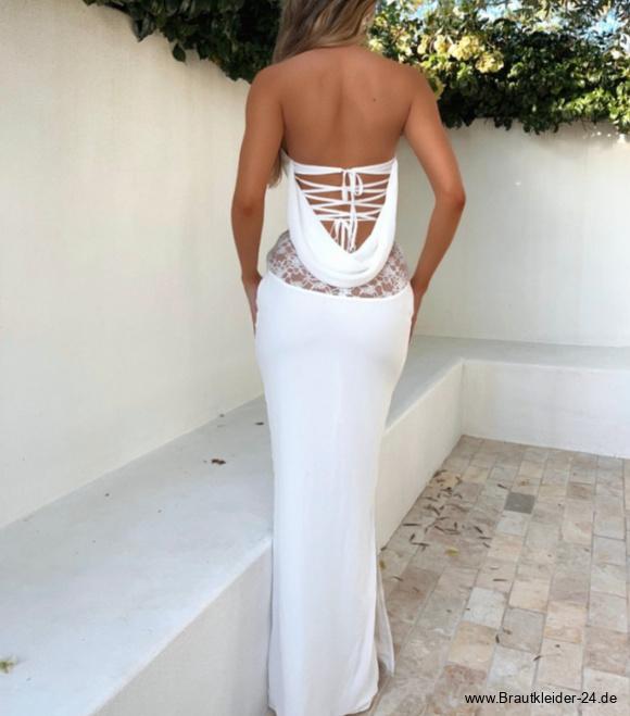Bustie Bleistift Standesamtkleid Hadia Lang in Weiß Elegant