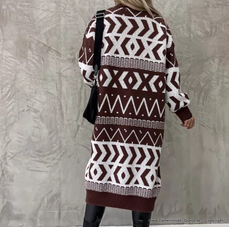 Lange Strickjacke Herbst Frühling Cardigan in Braun Weiß