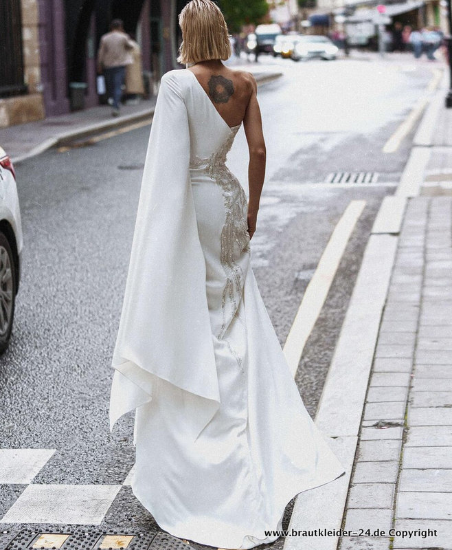 Sexy off-the-shoulder dress in white for the registry office bridal wear