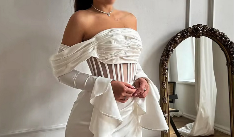 Schulterfreies Fit and Flare Brautkleid Gilliane mit Lingerie Oberteil Schlitz und Schleppe