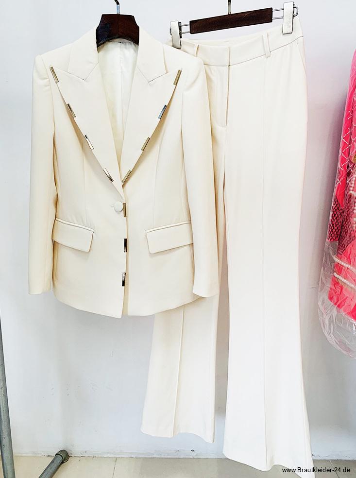 Standesamtmode Hosenanzug für die Braut in Weiß mit Metall Applikationen