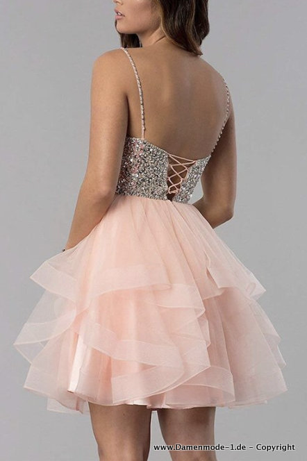 Süsses Spaghettiträger Cocktailkleid mit Pailletten in Rosa Silber