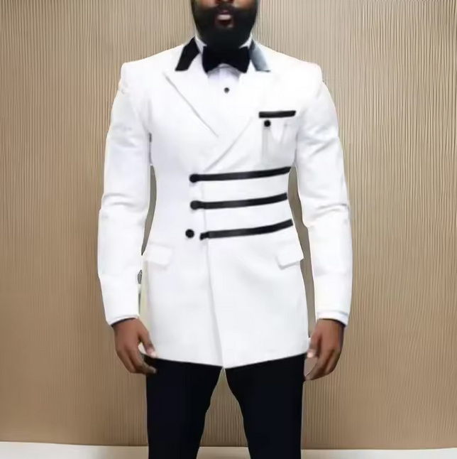 Zweireiher Bräutigam Smoking Hochzeitsanzug in Schwarz Weiß