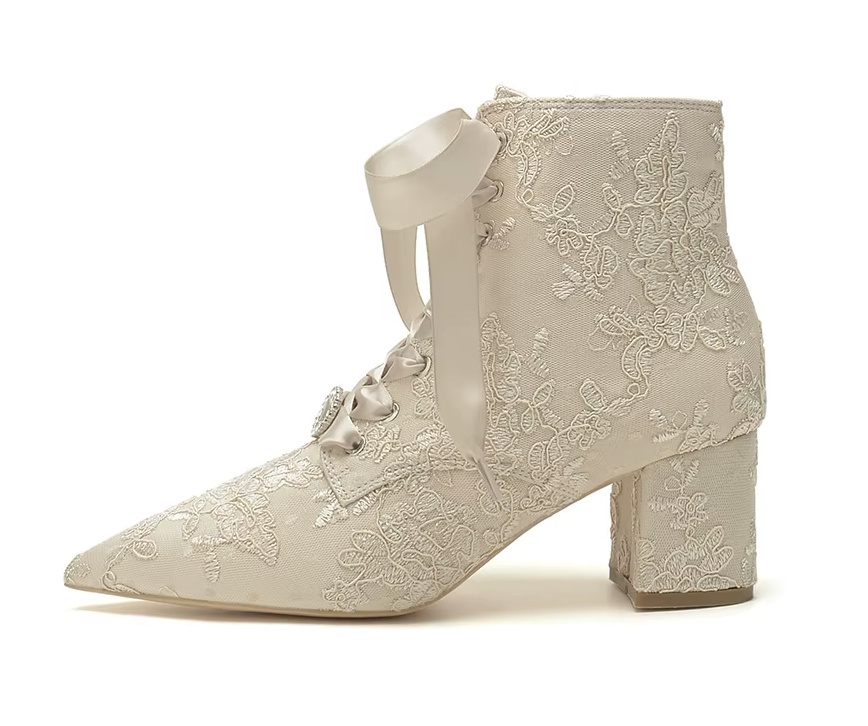 Brautschuhe Knöchel-Booties Gesa in Ivory zum Schnüren