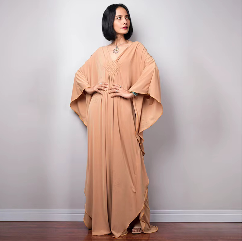 Maxi Sommer Strandkleid 2025 Tasha Champagne mit Fledermaus Ärmeln
