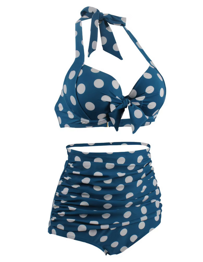 Pin Up Style Halterneck Bikini 2025 Tula Plissiert in Blau Gepunktet
