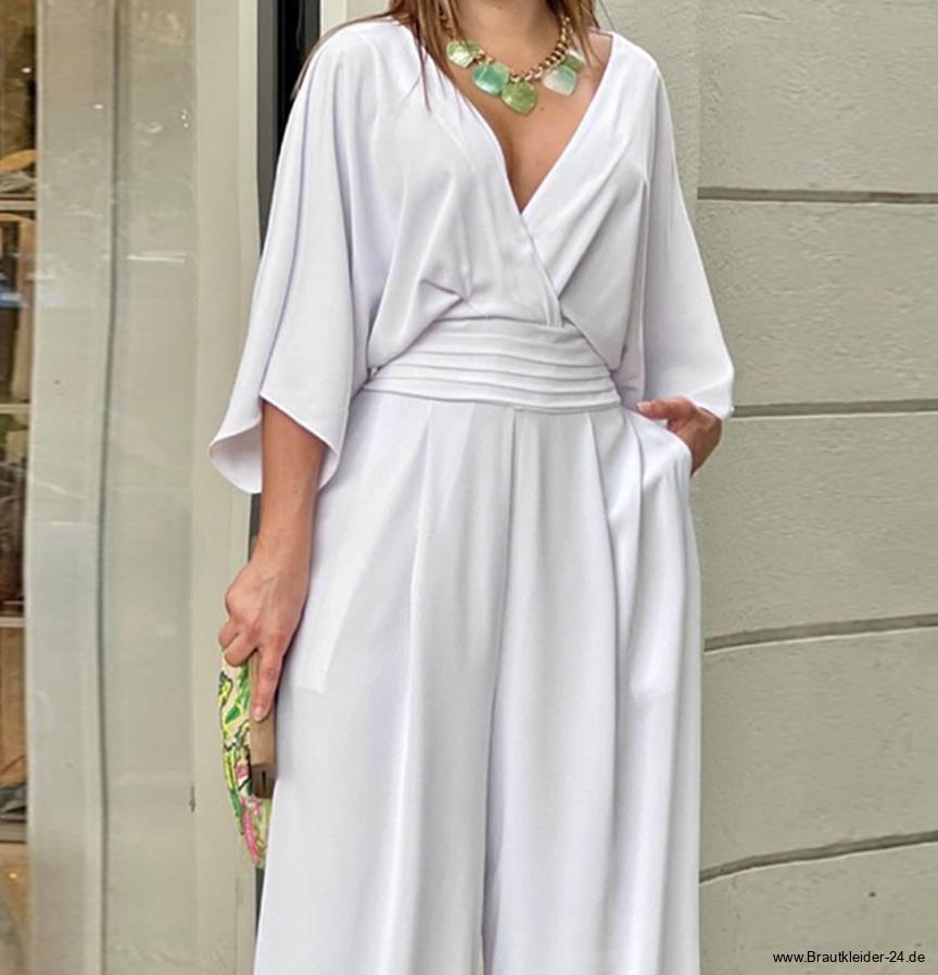 A line bridal jumpsuit one-piece for the registry office long with V neck