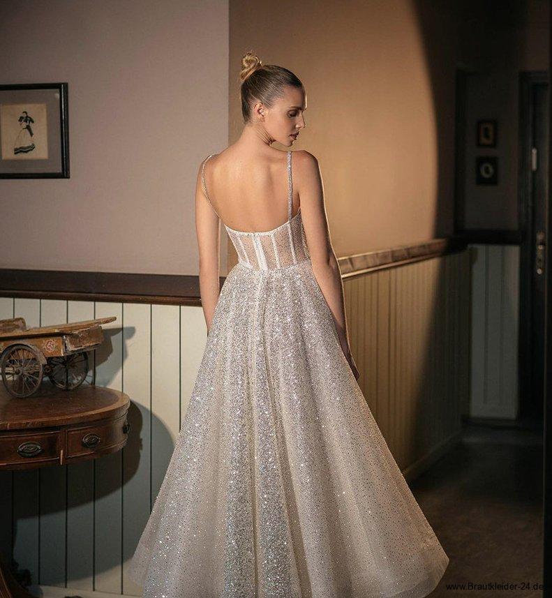 A-Linie Glitzer Brautkleid mit Spaghettiträger Knöchellang