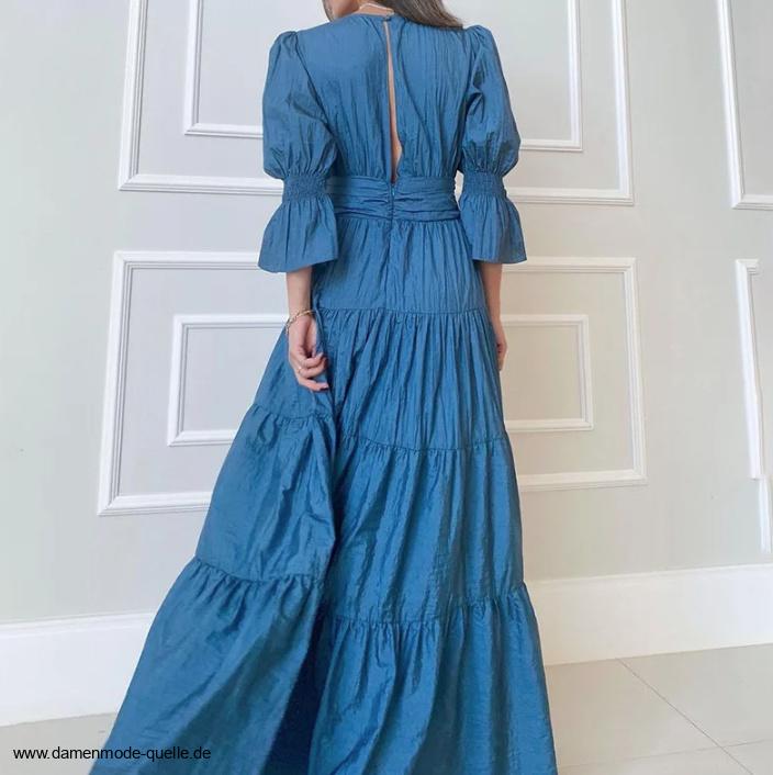 A-linie Maxi Sommerkleid mit V Ausschnitt Lang in Blau
