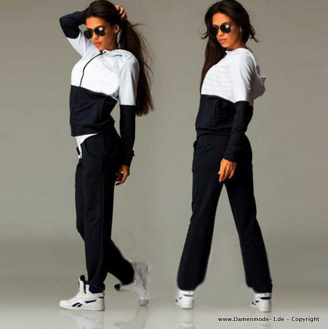 Damen Trainingsanzug Freizeitanzug in Schwarz Weiß