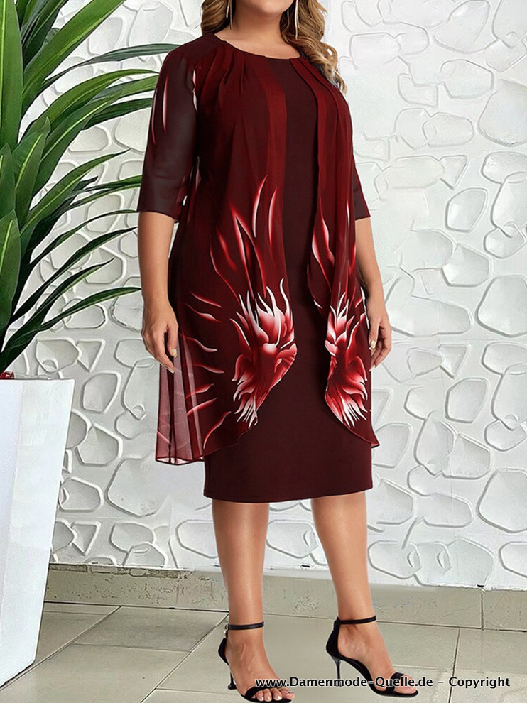 Plus Size Kleid Elegant in Weinrot mit Blumenmuster