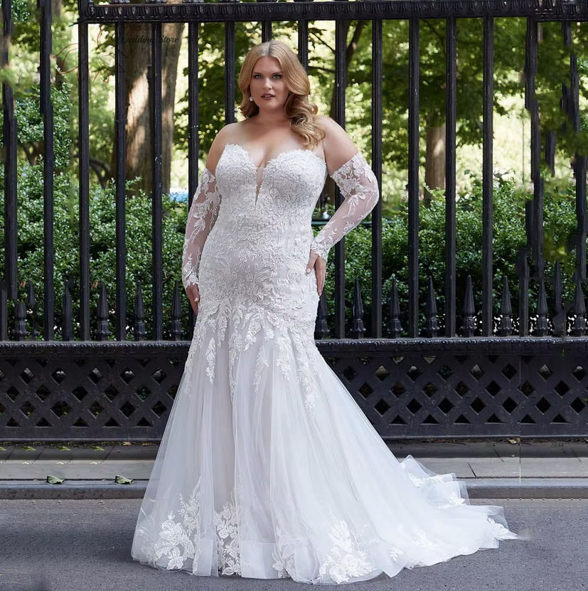 Off-the-shoulder mermaid wedding dress 2025 Daniekje sleeves detachable