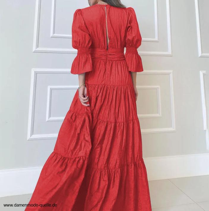 A-linie Maxi Sommerkleid mit V Ausschnitt Lang in Rot