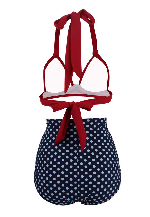 Pin Up Style Halterneck Bikini 2025 Tula Plissiert in Rot Blau Gepunktet