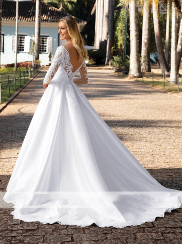 Long-sleeved A-line wedding dress Evina with lace and sexy back neckline
