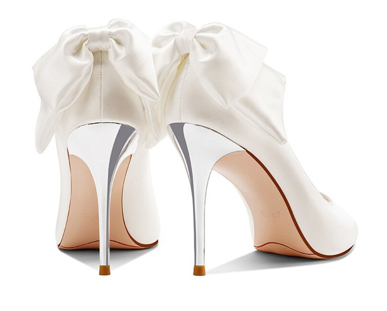 Satin Pumps Brautschuhe Hochzeitsschuhe in Weiß mit Schleife