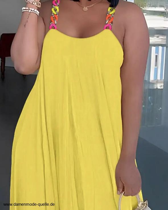 A-linie Hängerchen Maxi Sommerkleid mit Kette Lang in Gelb
